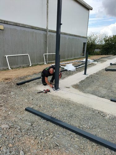 Chaque section, épaisseur de panneaux et doublage des poteaux est soigneusement calculée pour résister aux charges spécifiques imposées par l’utilisation d’un terrain de Foot5.