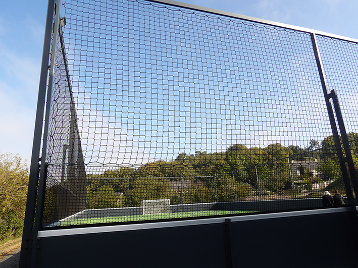 -Premier filet de hauteur de 1m00, avec bande polyester cousue = Maille 45 x 45mm – Fil diamètre 4mm. Positionnement dans profil aluminium renforcé sur la périphérie haute des panneaux