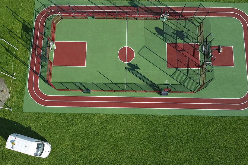 Un espace complet où tous les sports se rejoignent, jusqu’à la piste d’athlétisme. Mention spéciale pour le rendu final : cette surface de jeu de couleur verte rappelle la nature environnante et apporte un véritable esprit « carte postale »